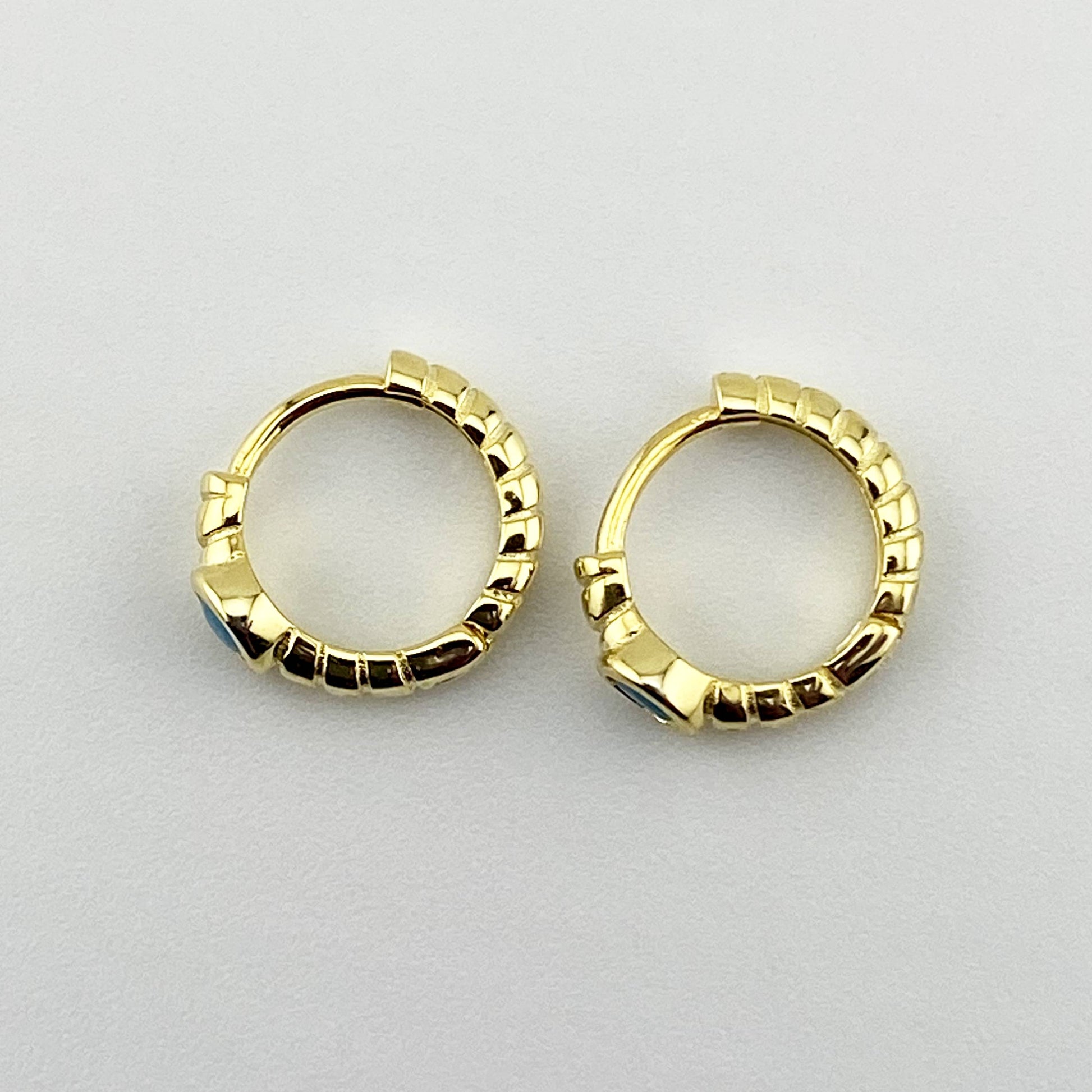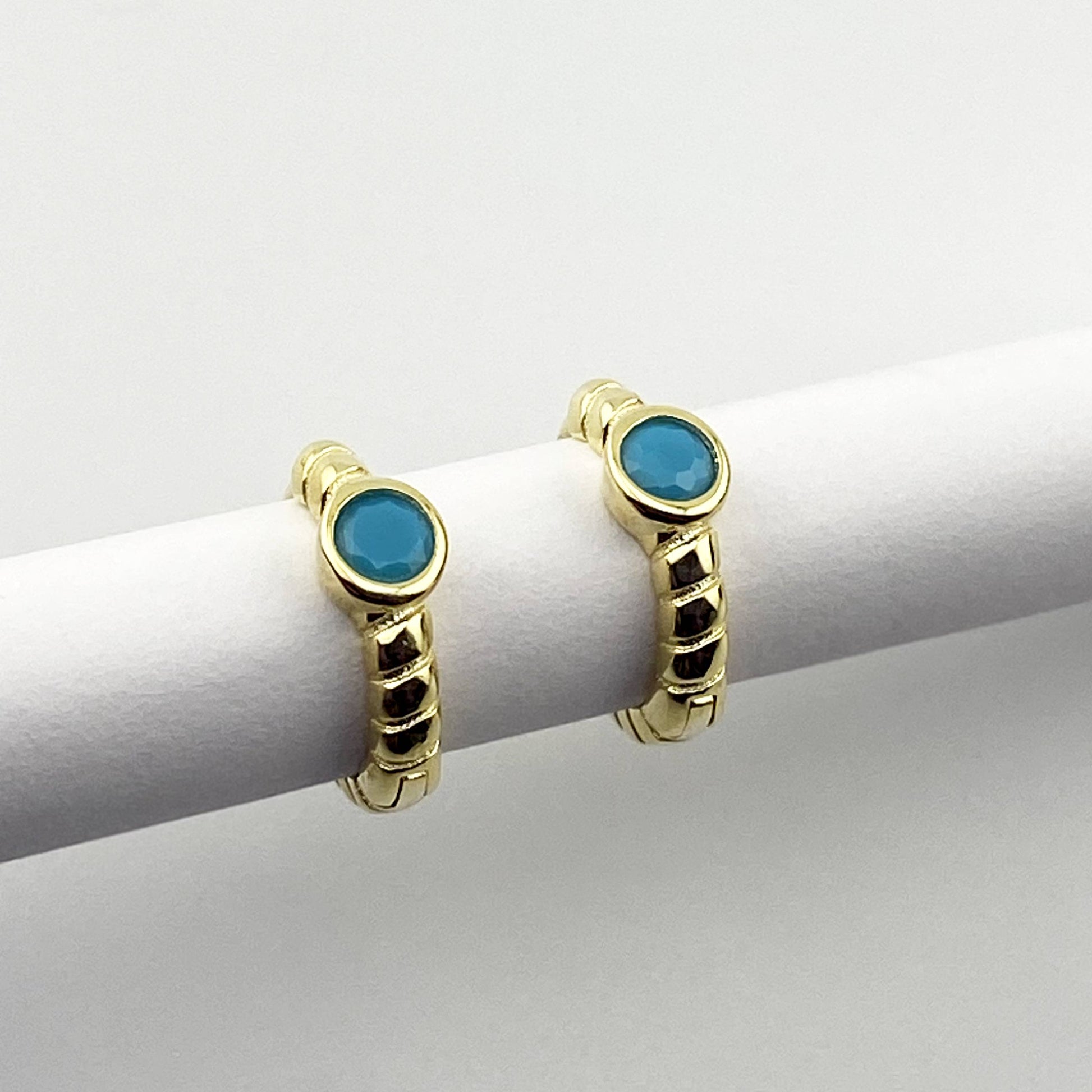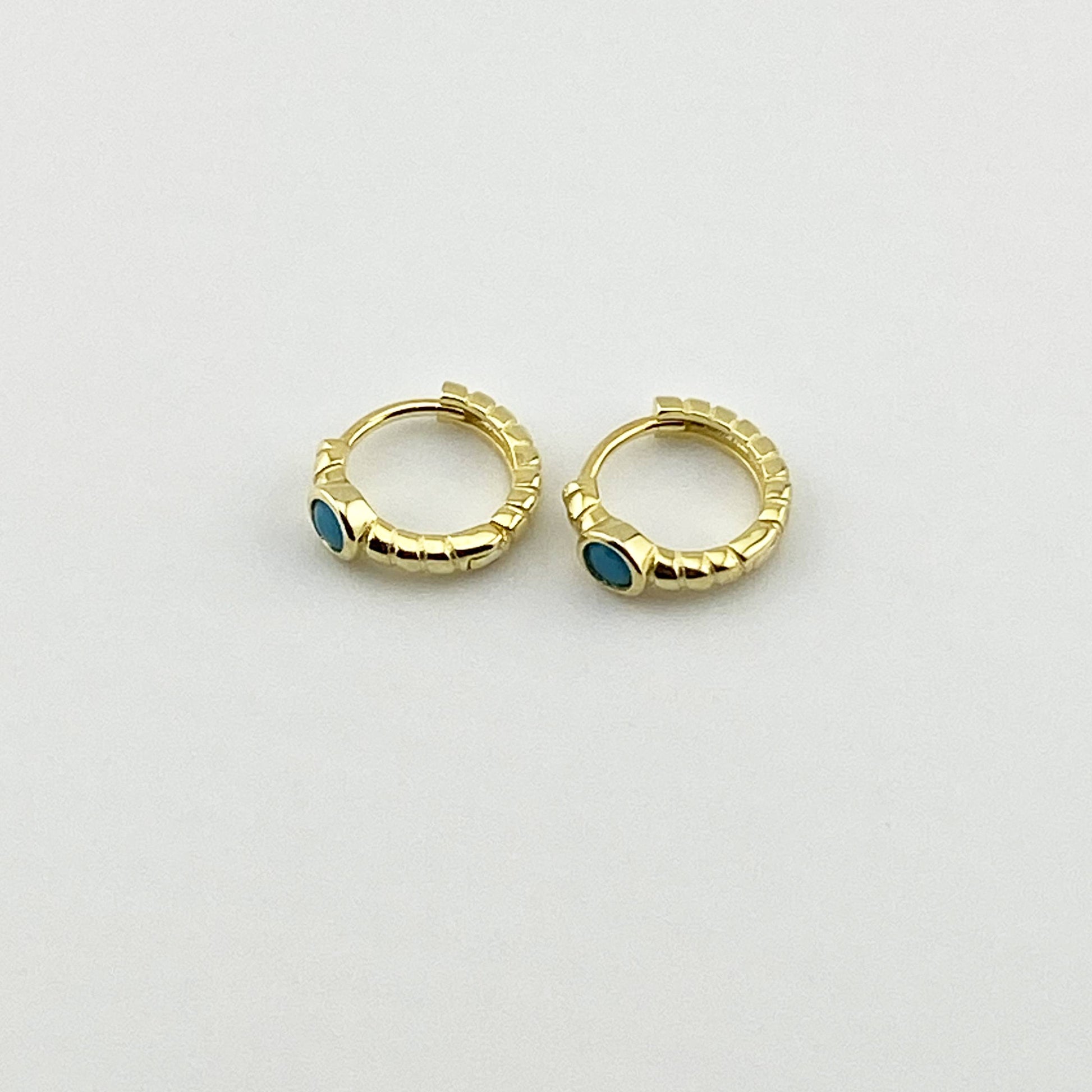 Mejora tu colección de pendientes Mini Hoops con estos aros en Plata de Ley 925 bañados en oro 18K con piedra turquesa. Gracias a su tamaño delicado, son perfectos para el segundo orificio.